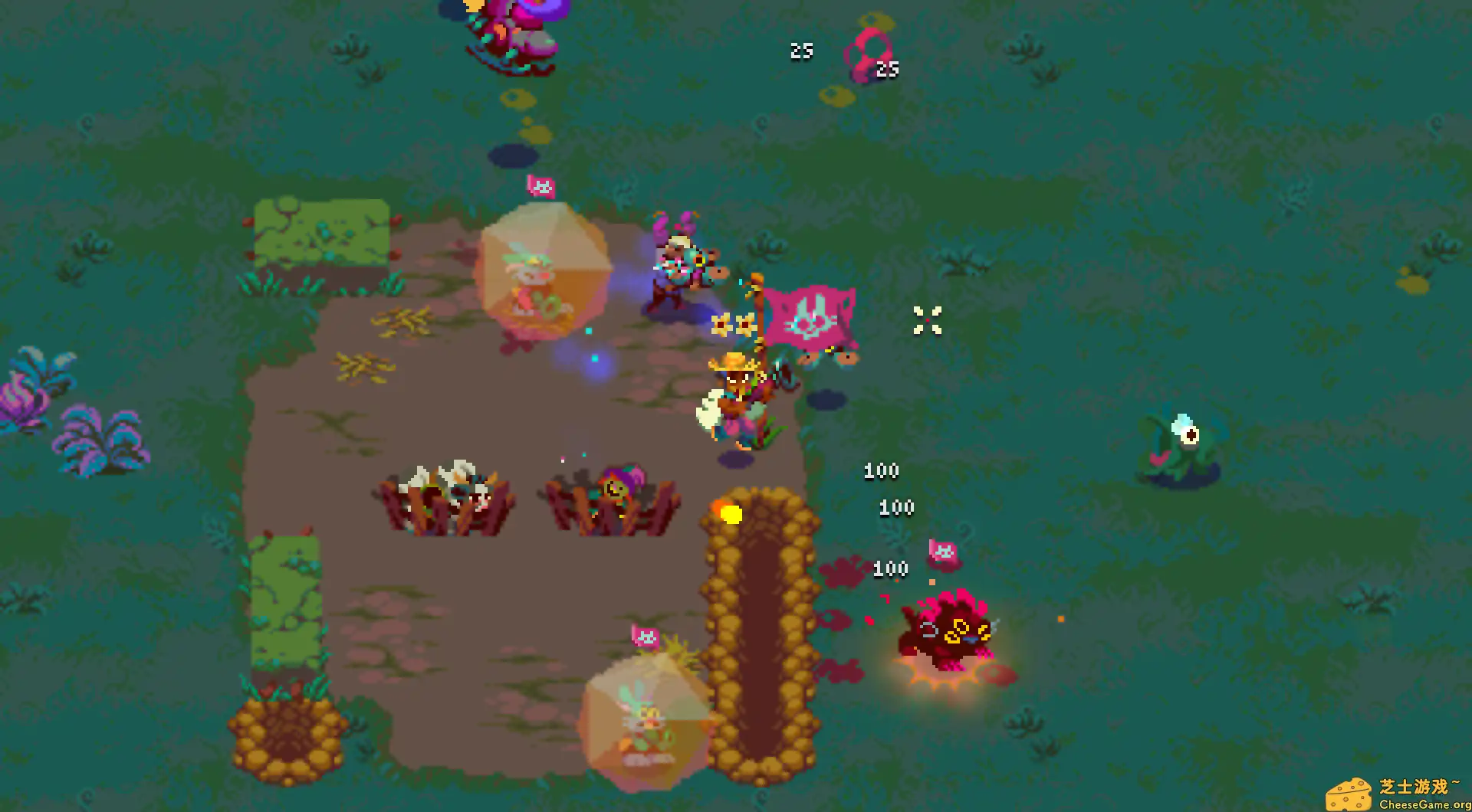 当末日废土遇上田园牧歌,这股荒诞又上头的化学反应,正是《辐射谷物语/Atomicrops》最迷人的地方。你以为自己在玩种田模拟器?不,你是在用锄头和AK47写一首后启示录时代的狂想曲——白天播种、浇水、施肥,晚上扛枪守夜,对抗潮水般的变异蟑螂与劫匪。这种“刚收完玉米就开火”的节奏感,简直是对现代人焦虑生活的精准隐喻。