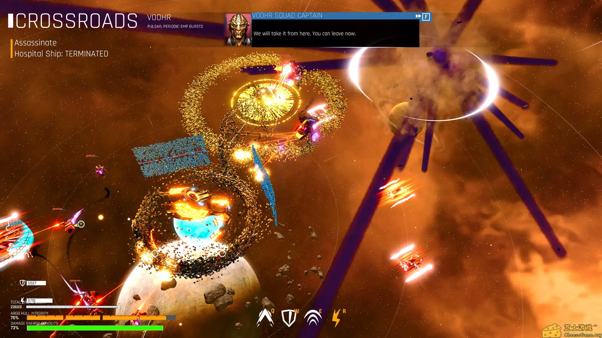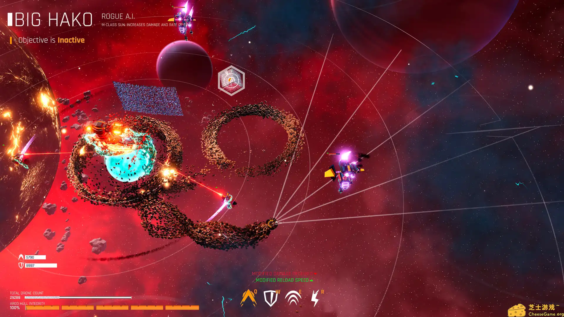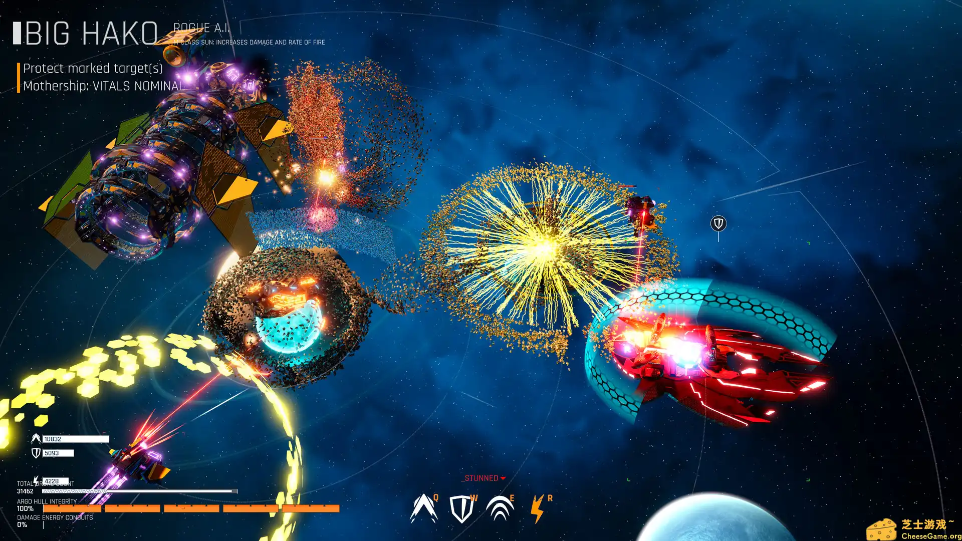 在《雄蜂战机/Drone Swarm》的浩瀚宇宙中,玩家将掌控一支由32000台无人机组成的庞大蜂群,执行跨星系的战略任务。通过实时操控与战术编队,玩家需灵活应对敌方舰队的多维度进攻,利用环境物理特性(如引力井、小行星带)制造连锁碰撞,实现以弱胜强的战术奇迹。游戏强调即时决策与动态战场适应能力,每一场战斗都是对玩家宏观统筹与微观操作的双重考验。