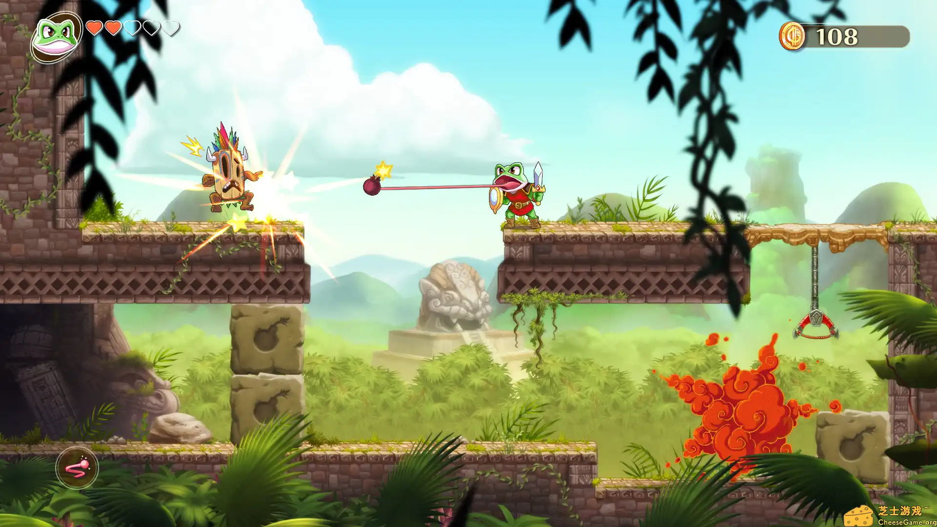 这游戏最狡猾的地方在于:你以为它只是个可爱风横版动作游戏,结果它偷偷塞进了类银河战士恶魔城的探索深度。每个变身形态不只是换皮,而是彻底改变解谜逻辑与战斗节奏——龙形态能飞檐走壁,青蛙能黏墙突进, 蜥蜴能钻地穿墙……设计师把“能力解锁=世界重构”玩到了极致。