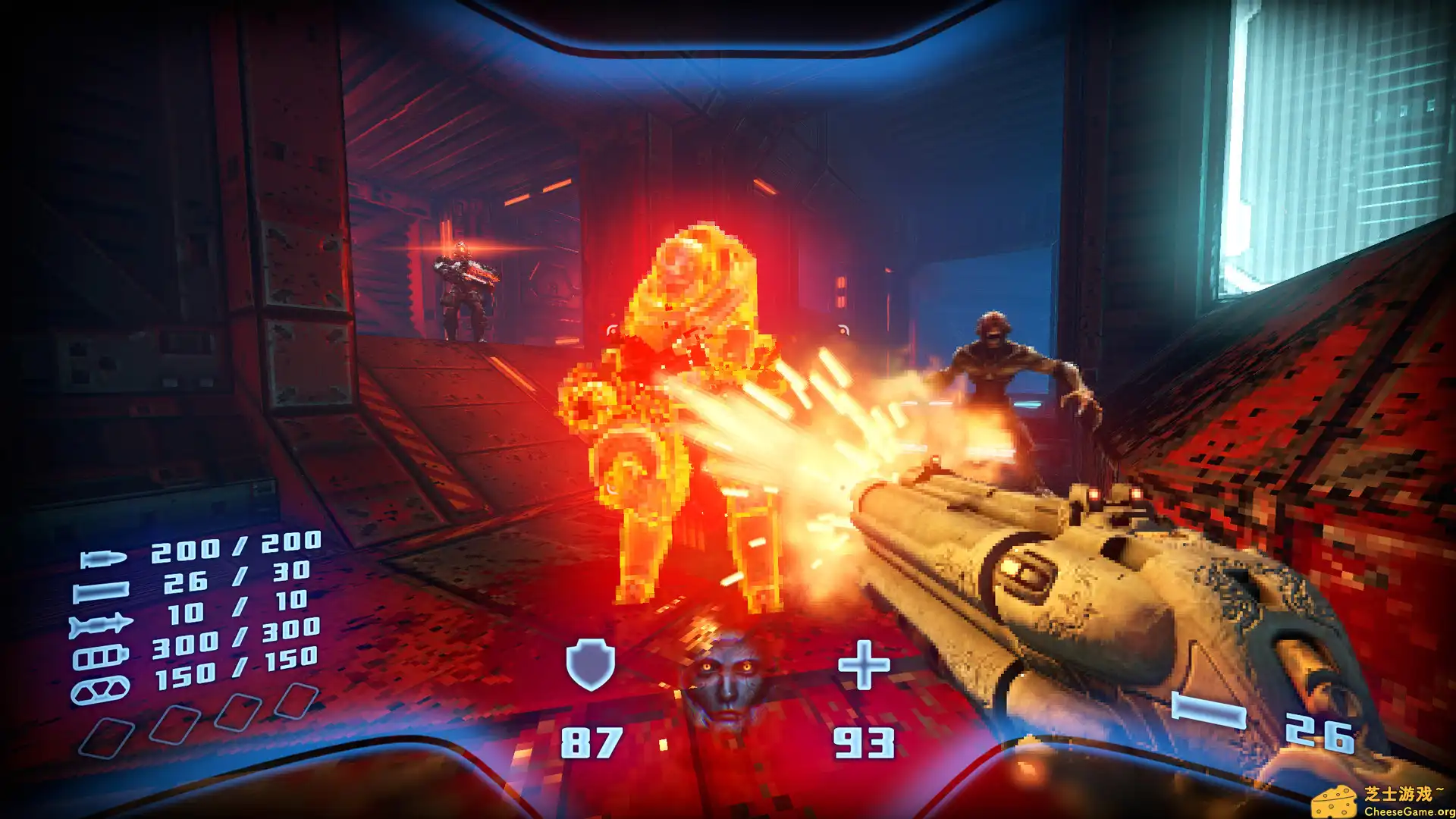 这游戏像一记铁拳砸在怀旧党的脸上——你以为它只是个贴图升级版Doom?错。它的动态光影与粒子系统会随着你爆头时的脑浆飞溅而实时扭曲,敌人死亡动画甚至带物理模拟的残肢弹跳。这不是致敬,这是用C++重写的信仰宣言。